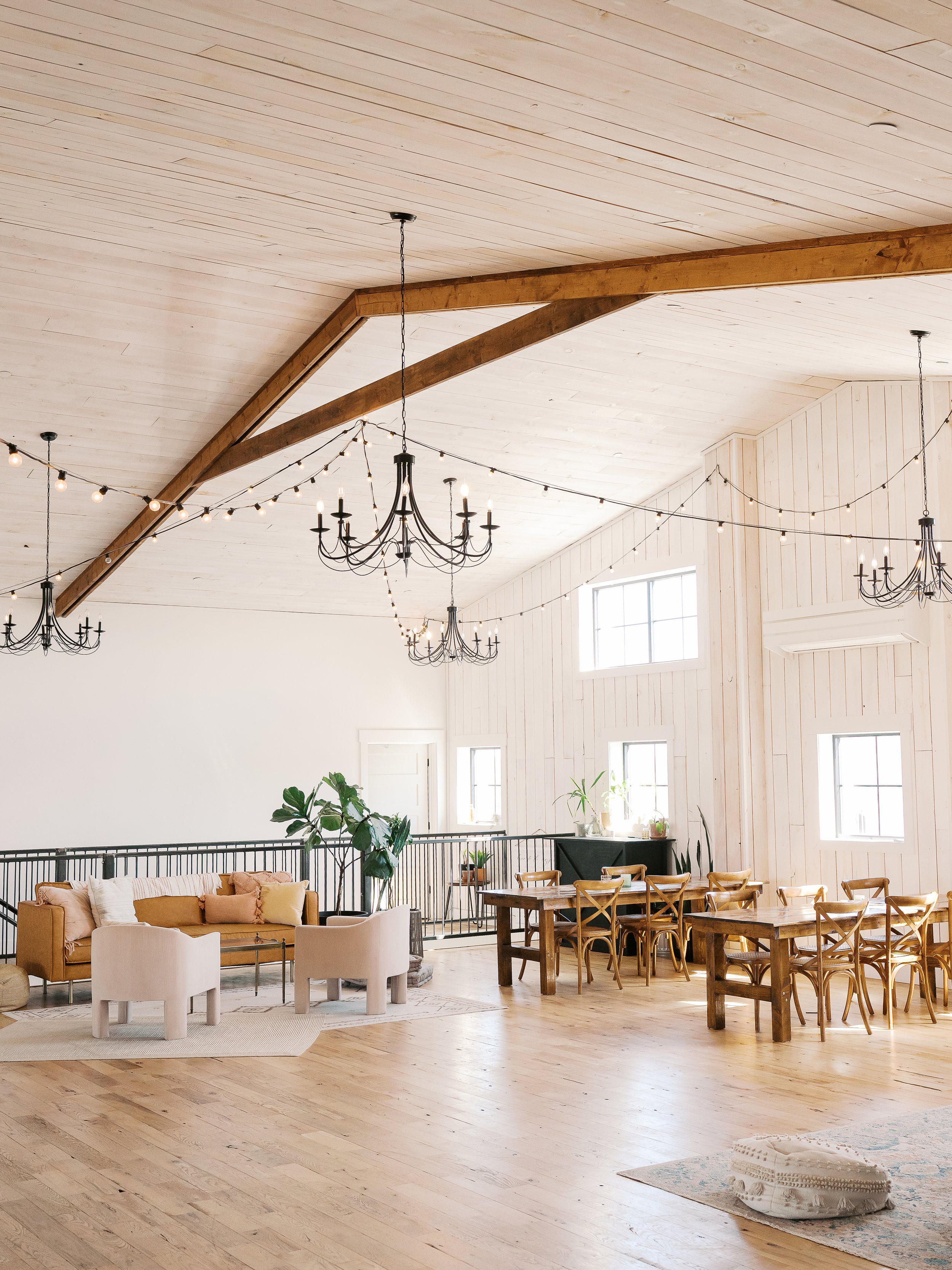 Little Lights was built with intention. From the design of the building, your cocktail hour overlooking the beautiful rolling hills, high-pitched ceilings, little nooks & seating areas to the simple decor that will match any theme.